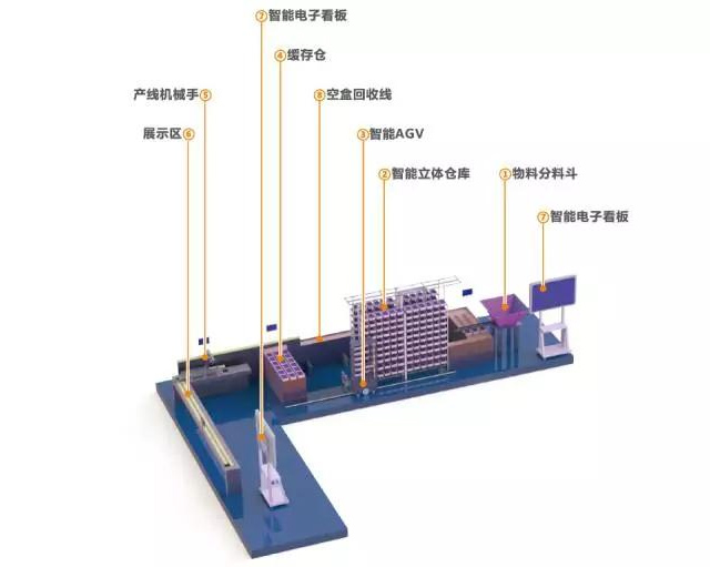 本套系統可以方便地與各種ERP/MES/WMS系統對接,用信息驅動自動線的執行,通過智能終端進行全過程的數據展現,為生產管理者進行持續的精益改善提供數據,可用于智能制造系統的演示、科研和教學。